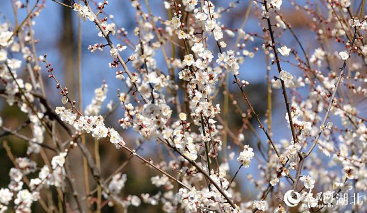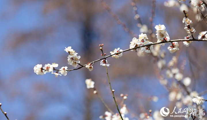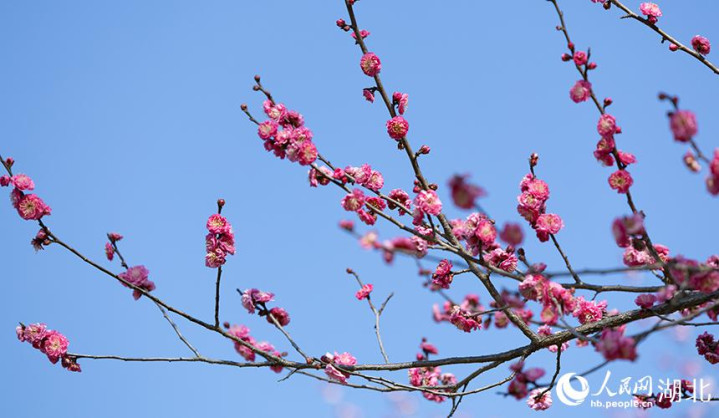 晴空下雪梅盛放。人民网彭昀迪摄