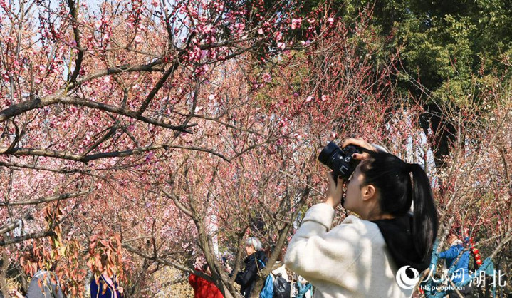 拍摄梅花的游客。人民网彭昀迪摄