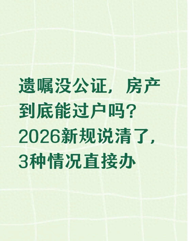 很多人都有个疑问:遗嘱没公证,房子到底能不能过户?其实答案很明确——能,但不是随便就能办,关键看遗嘱是否合法、继承人有没有争议,还有2026年刚普及的非公证继承新规,已经帮大家省去了不少麻烦。